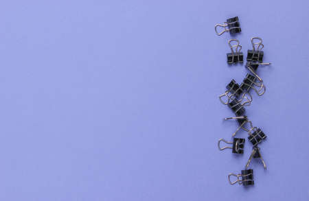Lot of paper clips on a purple background. Minimalistic office concept