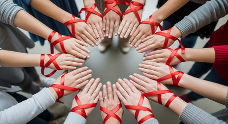 A diverse group of individuals standing in a circle, holding hands together in unity and solidarity.