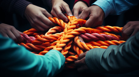 Collective Effort Integration and Unity with teamwork concept as a business ropes connected together. Generative AI