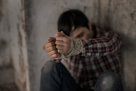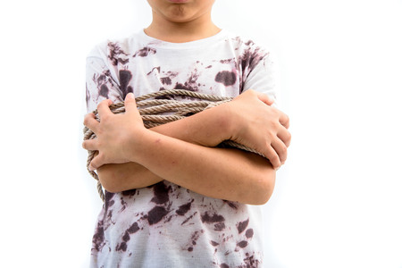 boy of a victim tied up with rope