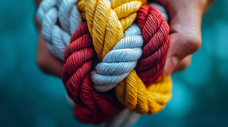 diverse ropes connected together as a symbol for cooperation and working collaboration. ai generated