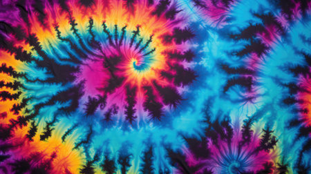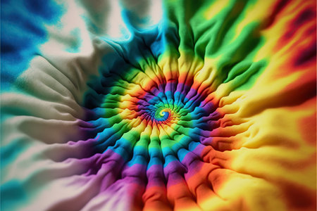 the vibrant tie-dye fabric features a mesmerizing swirl of colors, blending shades of blue, green, and yellow in a psychedelic pattern, evoking the free-spirited essence of the 1960s counterculture movement, perfect for adding a bohemian touch to any fashion or home decor. ai generated