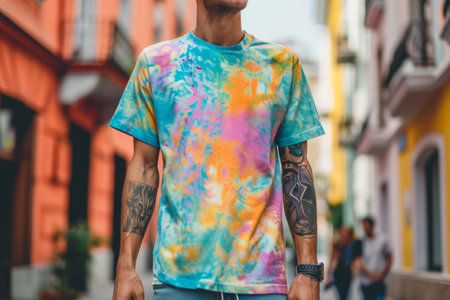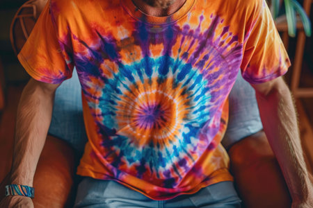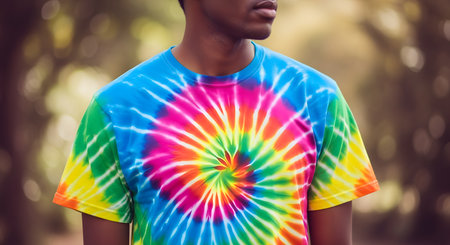 Vibrant Tie-Dye T-Shirt with Colorful Swirl Pattern on Casual Wearer