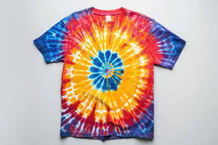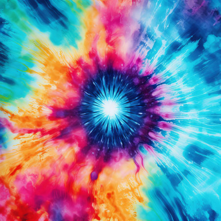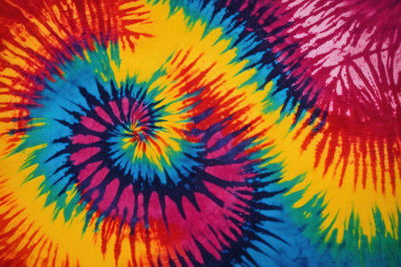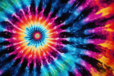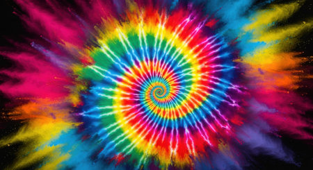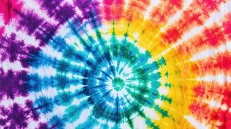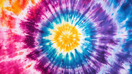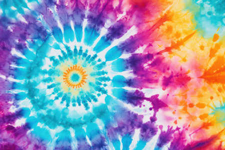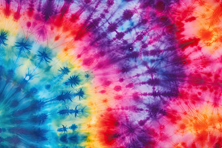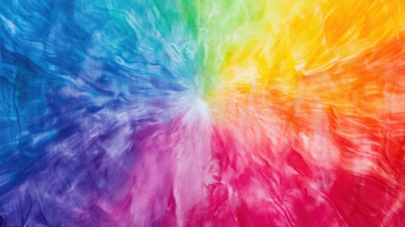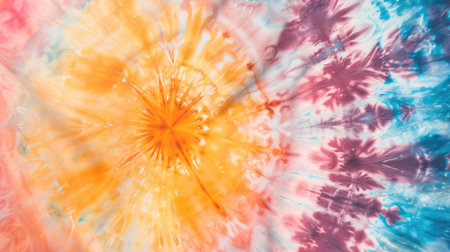 A vibrant tie dye pattern featuring a burst of colors on a fabric background. This artwork showcases a cheerful and artistic design, perfect for creative projects.