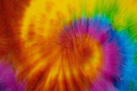 Tie Dye spiral vibrant and gradient rainbow multicolor , hippie shirt pattern . abstract fabric texture and background .