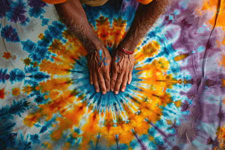 Hands Creating Tie-Dye Art on Multicolored Fabric - Vibrant Artistic Process
