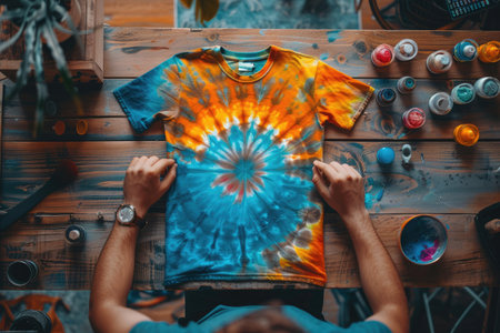 Creating Colorful Tie-Dye Designs: Hand-Painted Artistic Shirt with Vibrant Patterns and Paint Supplies