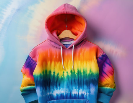 A vibrant hoodie stands against a gradient backdrop, embodying LGBT pride and diversity.