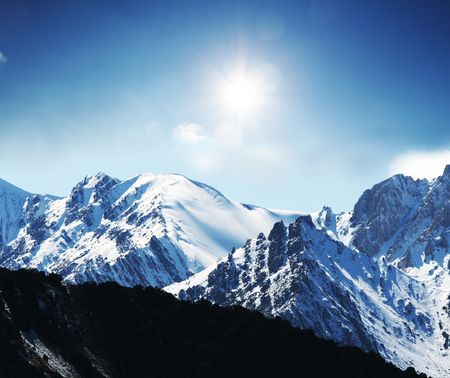 landscape of high mountains covered with snow