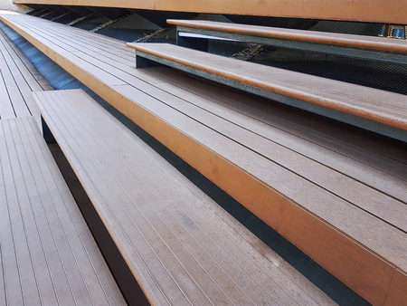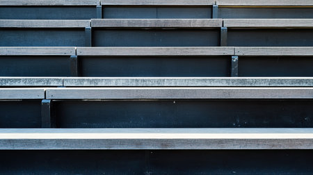 Perspective View of Wooden Plank Seats and Stairs at Stadium
