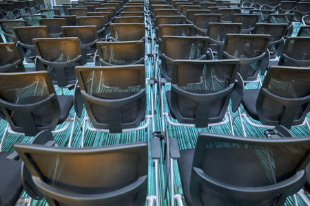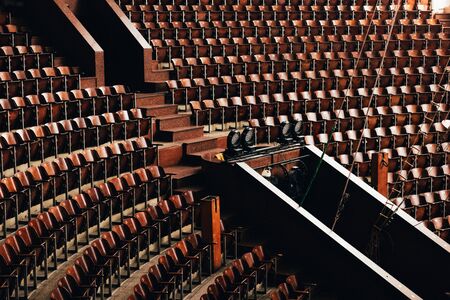 Empty rows of chairs, seats in the concert hall, in the sports hall.