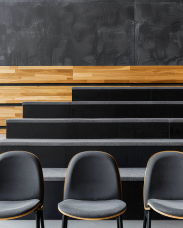 Modern university lecture halls with sleek design elements and highly contrasting tones.