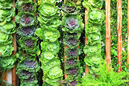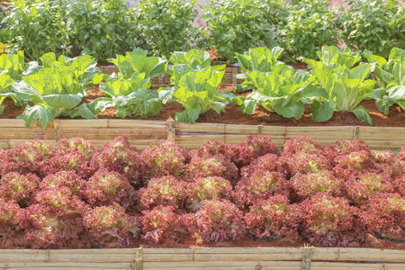 chinese kale green and red oak lettuce salad in organic plantation farm