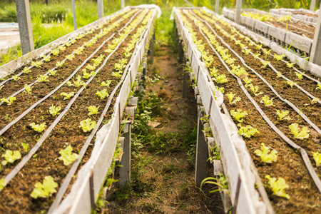 lettuce bed in field agriculture.