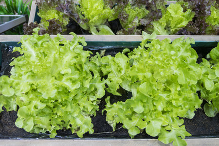 Fresh lettuce in garden at roof top building garden