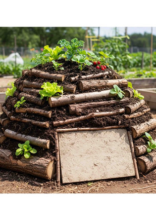 Vegetable garden in the form of a chimney with roots.