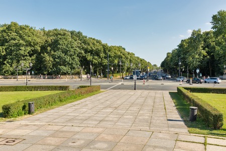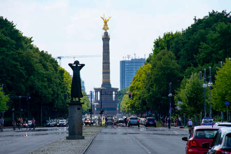 BERLIN, GERMANY - JULY 14, 2018: Street traffic on Hofjagerallee in Tiergarten park close to Victory column. Berlin is the capital and largest city of Germany by both area and population.