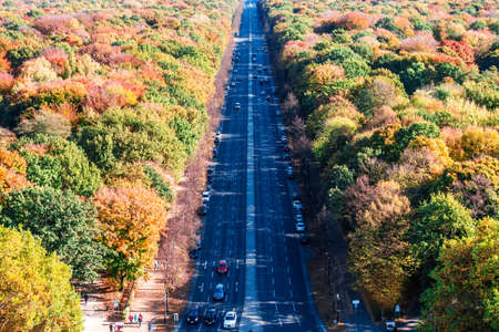 The road leading to Victory Column along autumn trees in Berlin, Germany