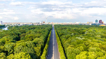 Cityscape of Berlin and road in Tiergarten park landscape in cloudy day