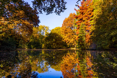 Beautiful autumn landscape with pleasant warm sunny light. Picture taken in Bad Muskau park, Saxony, Germany.