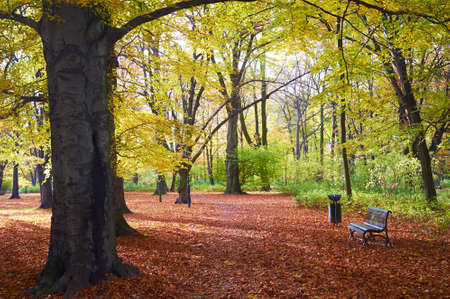 Autumn in the park. Autumn landscape with trees and leaves.