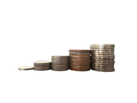 Coins stacking for saving or business grow up concept isolated on white background.