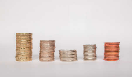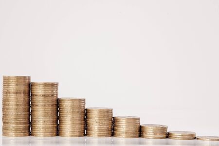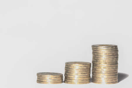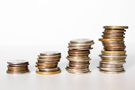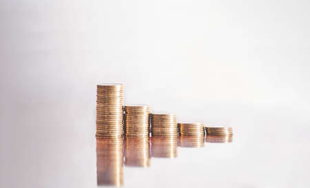 Coins in the form of a histogram on a white background. Concept of lending, savings, insurance