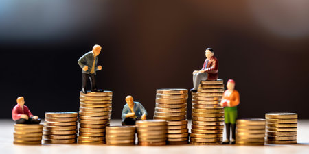 Multiple stacks of coins of varying heights and metals symbolize savings, investment, and financial growth on a clean background