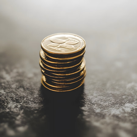 20251228 showing increasing stacks of gold and silver coins arranged in a bar graph formation on a dark surface...