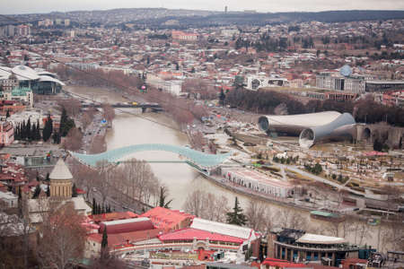Winter view of Tbilisi Bridge of Peace and Old Town in Tbilisi, Georgia