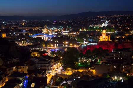 View over the old town Tbilisi at night, Georgia, Caucasus
