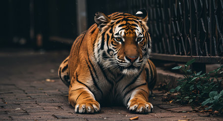 Portrait of a tiger in a zoo. Wildlife scene from nature.