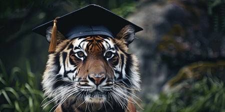 Portrait of a Sumatran Tiger in a Graduation Cap