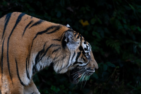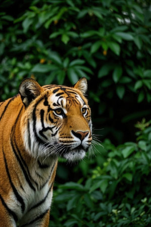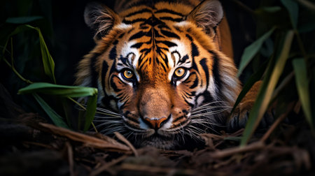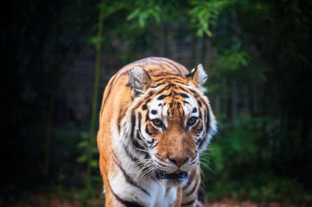 Close-up of a tiger in a jungle, wild dangerous animal.