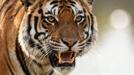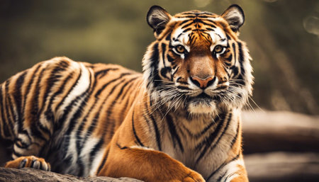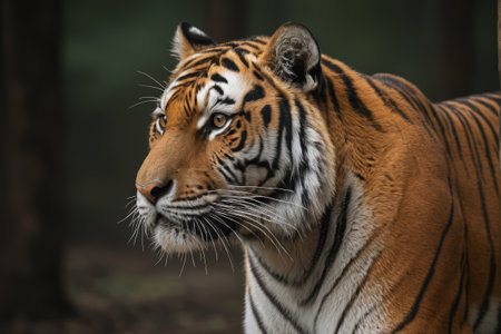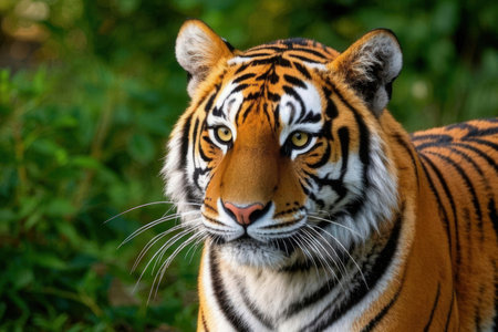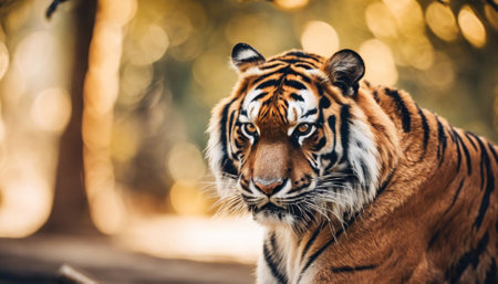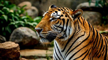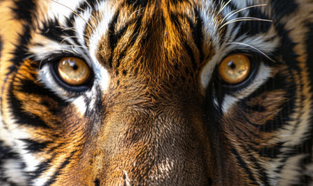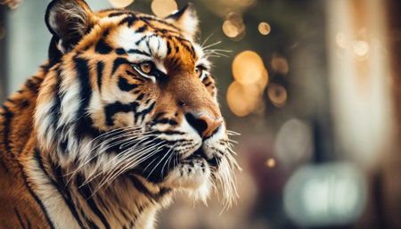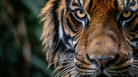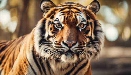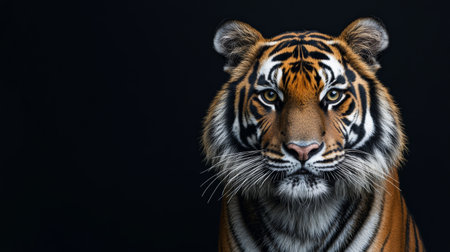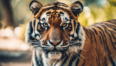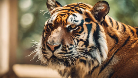 This stunning close-up portrait of a tiger highlights its impressive features, showcasing the beauty and intensity of nature powerful predator.