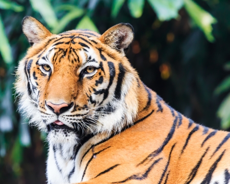Close up Indochinese tiger is beautiful animal and dangerous in forest