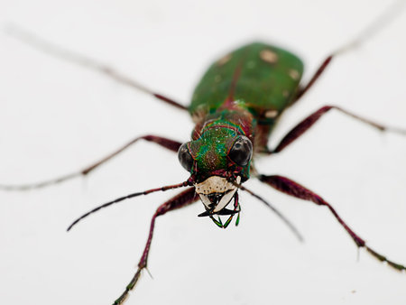 Green Tiger Beetle macro - Cicindela campestris, scary face-on