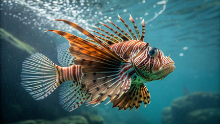 Striking Portrait of a Lionfish, Vibrant Colors, Underwater Elegance
