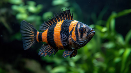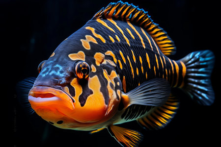 Captivating Close-Up: Majestic Tiger Oscar Fish in Aquarium