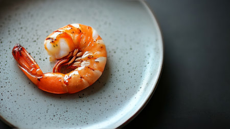 Red shrimp on a white plate and beige background. Minimalistic concept with seafood