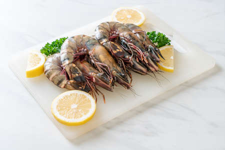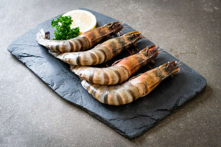 Feresh tiger prawn shrimp sell in fishery market close up seafood