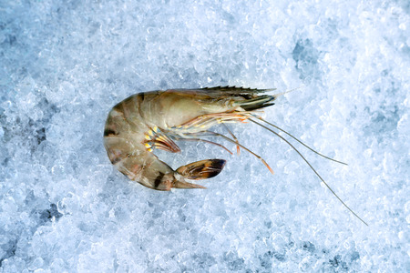 Fresh prawns frozen to maintain their temperature are sold in seafood markets.
