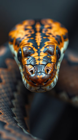 Striking close-up of a colorful snake showcasing detailed patterns and textures in a natural setting