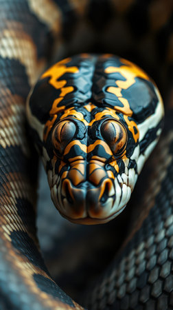 Colorful python coil observed up close in a natural habitat during daylight