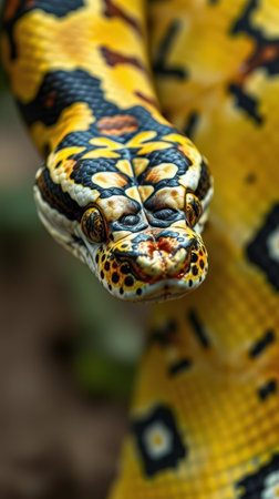 A stunning close-up of a python revealing its striking patterns and behaviors in a natural setting.
