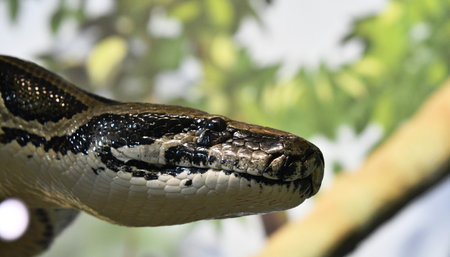 Wild snake 'Python' beautiful reptile. Selective focus and toned image.