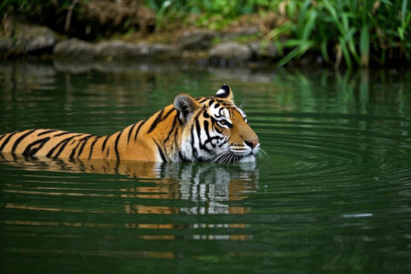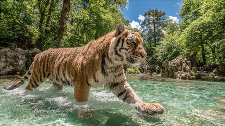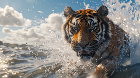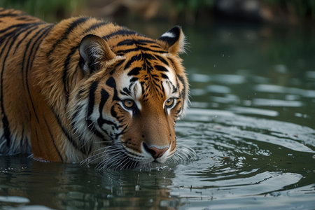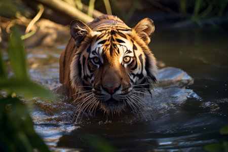 Observing a wild tiger confidently navigating through water. A high quality image making by generative ai.