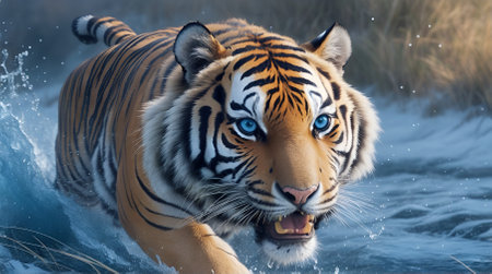 A Tiger Bravely Running Like, Braveness Lovely Blue Eyes, AI Generative