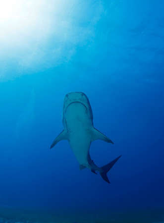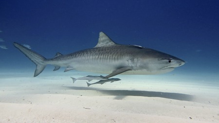 A Tiger Shark (Galeocerdo cuvier) in Bimini, Bahamas