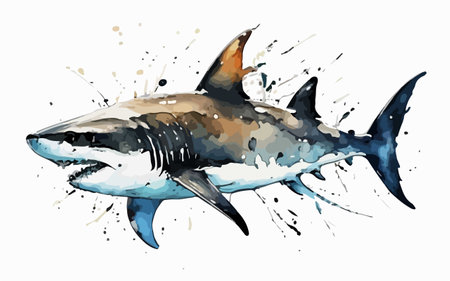 Watercolor sketch of shark isolated on white background. Vector illustration.